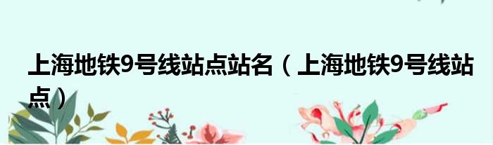 上海地铁9号线站点站名(上海地铁9号线站点)