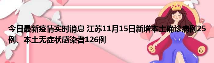 今日最新疫情实时消息 江苏11月15日新增本土确诊病例25例、本土无症状感染者126例