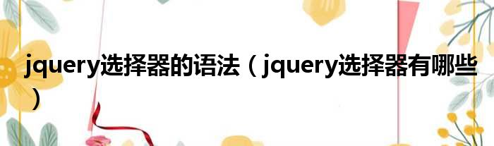 导读 大家好,今天小六子来为大家解答以下的问题,关于jquery选择器的语法,jquery选择器有哪些这个很多人还不知道,现在让我们一起来看看吧!1、