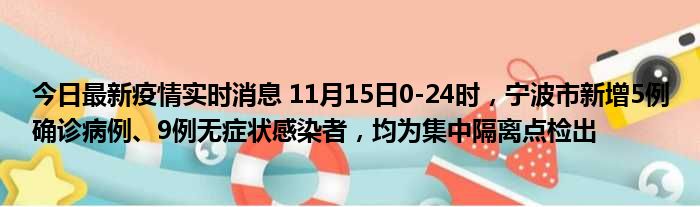 您的位置:首页 >房产频道 > 综合精选 > 今日最新疫情实时消息 11月15日0-24时,宁波市新增5例确诊病例、9例无症状感染者,均为集中隔离点检出 2022-12-05 09:40:13 • 来源: 导读 免责声明:本文由用户上传,如有侵权请联系删除! 上一篇:主营业务税金及附加属于什么科目(主营业务税金及附加属于什么科目) 下一篇:今日最新疫情实时消息 江苏11月15日新增本土确诊病例25例、本土无症状感染者126例