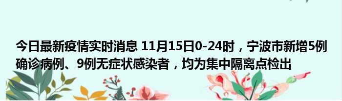 您的位置:首页 >房产频道 > 综合精选 > 今日最新疫情实时消息 11月15日0-24时,宁波市新增5例确诊病例、9例无症状感染者,均为集中隔离点检出 2022-12-05 13:22:18 • 来源: 导读 免责声明:本文由用户上传,如有侵权请联系删除! 上一篇:等价矩阵的行列式相等吗(等价矩阵) 下一篇:今日最新疫情实时消息 江苏11月15日新增本土确诊病例25例、本土无症状感染者126例