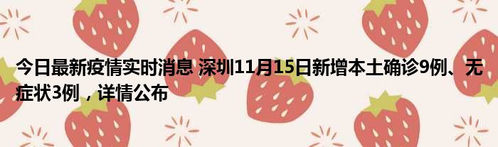 深圳卫健委通报,11月15日0-24时,深圳新增9例新冠肺炎确诊病例和3例新冠病毒无症状感染者