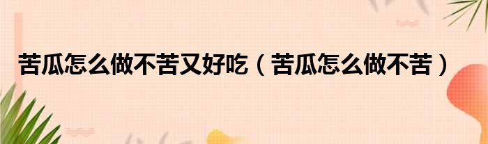苦瓜怎么做不苦又好吃(苦瓜怎么做不苦)