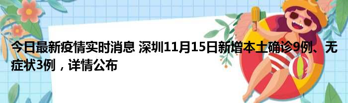 今日最新疫情实时消息 深圳11月15日新增本土确诊9例、无症状3例,详情公布