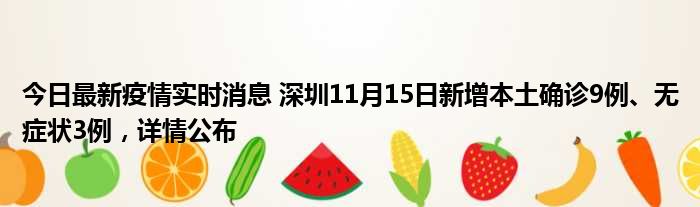 深圳卫健委通报,11月15日0-24时,深圳新增9例新冠肺炎确诊病例和3例新冠病毒无症状感染者