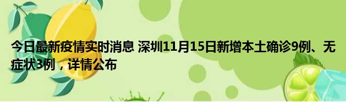 今日最新疫情实时消息 深圳11月15日新增本土确诊9例、无症状3例,详情公布