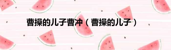 曹操的儿子曹冲(曹操的儿子)