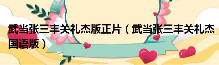 导读 大家好,今天小六子来为大家解答以下的问题,关于武当张三丰关礼杰版正片,武当张三丰关礼杰国语版这个很多人还不知道,现在让我们一起来看