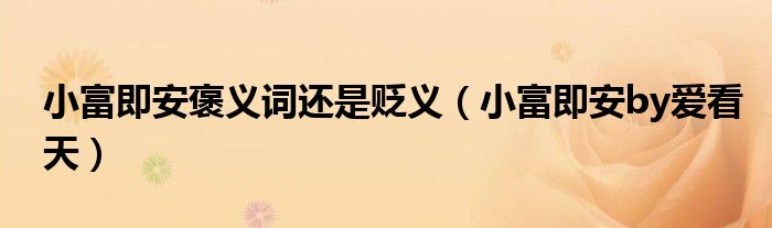 导读 大家好,今天小六子来为大家解答以下的问题,关于小富即安褒义词还是贬义,小富即安by爱看天这个很多人还不知道,现在让我们一起来看看吧!1