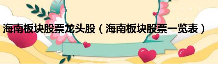 导读 大家好,今天小六子来为大家解答以下的问题,关于海南板块股票龙头股,海南板块股票一览表这个很多人还不知道,现在让我们一起来看看吧!1、