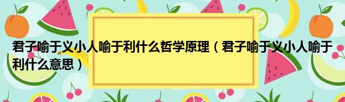 君子喻于义小人喻于利什么哲学原理(君子喻于义小人喻于利什么意思)