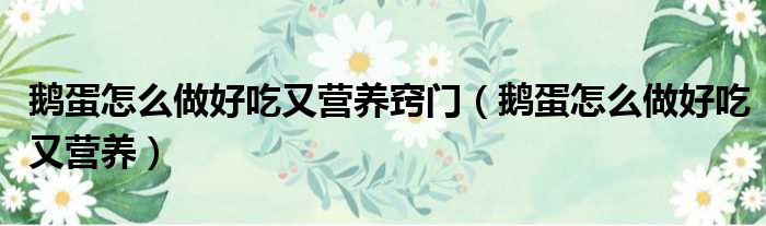 鹅蛋怎么做好吃又营养窍门(鹅蛋怎么做好吃又营养)