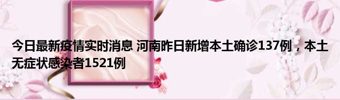 您的位置:首页 >房产频道 > 综合精选 > 今日最新疫情实时消息 河南昨日新增本土确诊137例,本土无症状感染者1521例 2022-12-05 23:50:15 • 来源: 导读 免责声明:本文由用户上传,如有侵权请联系删除! 上一篇:长郡梅溪湖中学简介(长郡梅溪湖中学) 下一篇:请问Xi安铁路技师学院的招生内容是骗人的吗?
