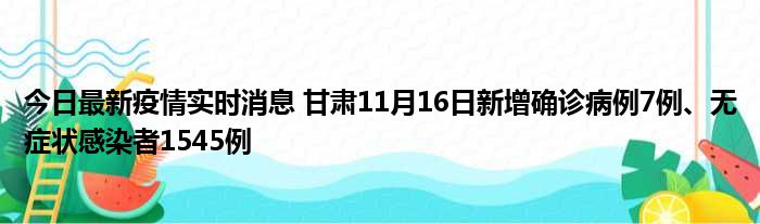 今日最新疫情实时消息 甘肃11月16日新增确诊病例7例、无症状感染者1545例