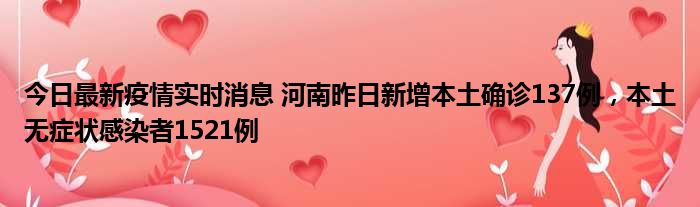 您的位置:首页 >房产频道 > 综合精选 > 今日最新疫情实时消息 河南昨日新增本土确诊137例,本土无症状感染者1521例 2022-12-06 02:50:14 • 来源: 导读 免责声明:本文由用户上传,如有侵权请联系删除! 上一篇:上海李娅15 bt下载 下一篇:广州市中小学生健康监测问卷调查