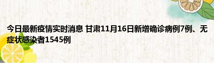 今日最新疫情实时消息 甘肃11月16日新增确诊病例7例、无症状感染者1545例