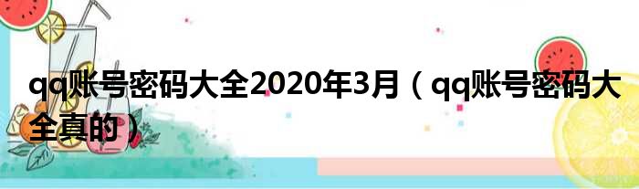 导读 大家好,今天小六子来为大家解答以下的问题,关于qq账号密码大全2020年3月,qq账号密码大全真的这个很多人还不知道,现在让我们一起来看看吧
