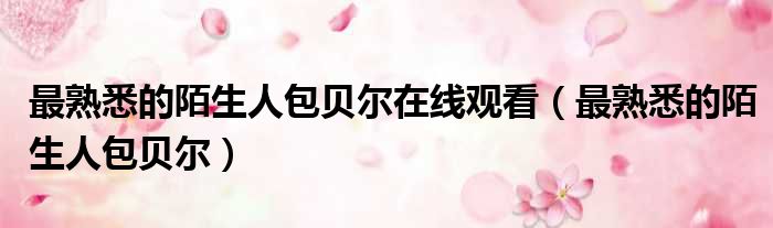 最熟悉的陌生人包贝尔在线观看(最熟悉的陌生人包贝尔)