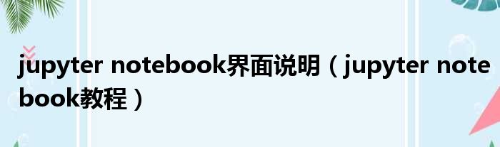 导读 大家好,今天小六子来为大家解答以下的问题,关于jupyter notebook界面说明,jupyter notebook教程这个很多人还不知道,现在让我们一起来