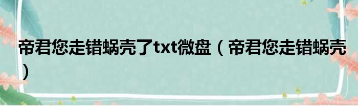 帝君您走错蜗壳了txt微盘(帝君您走错蜗壳)