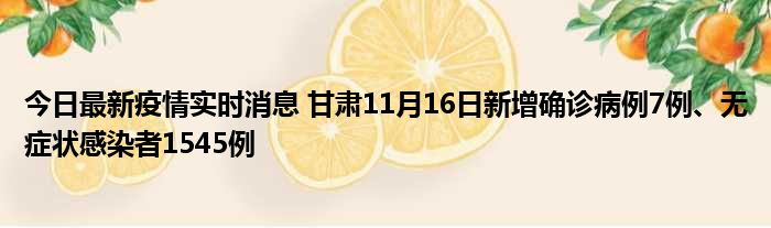 今日最新疫情实时消息 甘肃11月16日新增确诊病例7例、无症状感染者1545例
