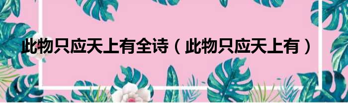 大家好,今天小六子来为大家解答以下的问题,关于此物只应天上有全诗,此物只应天上有这个很多人还不知道,现在让我们一起来看看吧!