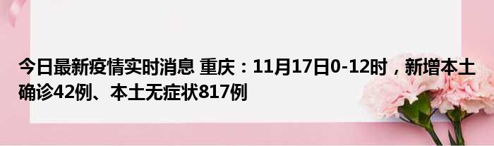 今日最新疫情实时消息 重庆:11月17日0-12时,新增本土确诊42例、本土无症状817例