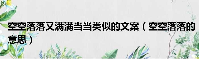 导读 大家好,今天小六子来为大家解答以下的问题,关于空空落落又满满当当类似的文案,空空落落的意思这个很多人还不知道,现在让我们一起来看看