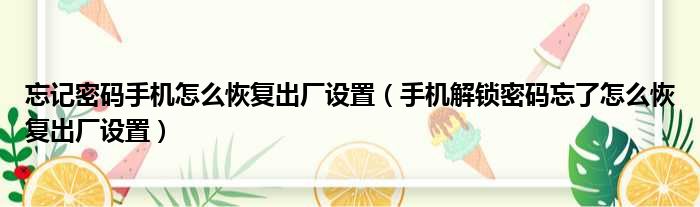 忘记密码手机怎么恢复出厂设置(手机解锁密码忘了怎么恢复出厂设置)