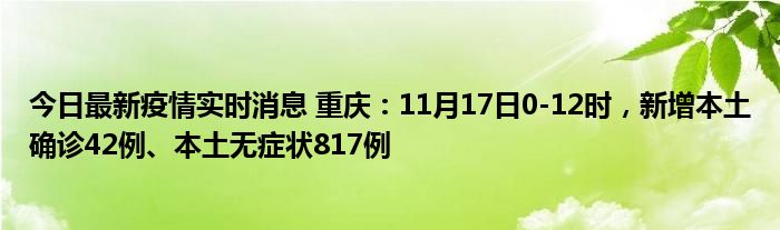 今日最新疫情实时消息 重庆:11月17日0-12时,新增本土确诊42例、本土无症状817例