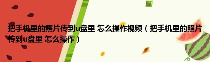 把手机里的照片传到u盘里 怎么操作视频(把手机里的照片传到u盘里 怎么操作)