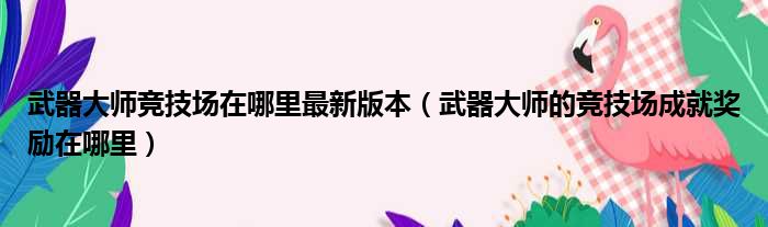 导读 大家好,今天小六子来为大家解答以下的问题,关于武器大师竞技场在哪里最新版本,武器大师的竞技场成就奖励在哪里这个很多人还不知道,现在