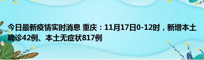 今日最新疫情实时消息 重庆:11月17日0-12时,新增本土确诊42例、本土无症状817例