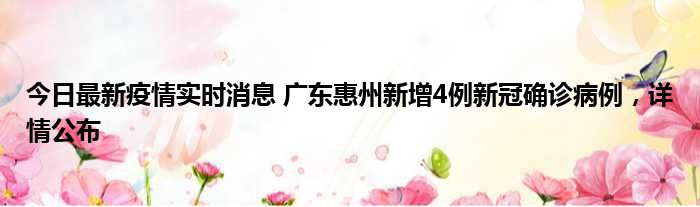 今日最新疫情实时消息 广东惠州新增4例新冠确诊病例,详情公布