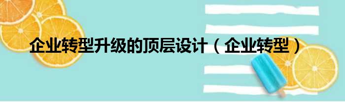 大家好,今天小六子来为大家解答以下的问题,关于企业转型升级的顶层设计,企业转型这个很多人还不知道,现在让我们一起来看看吧!
