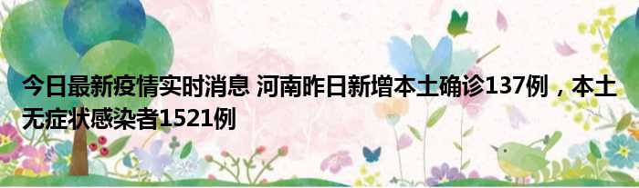 您的位置:首页 >房产频道 > 综合精选 > 今日最新疫情实时消息 河南昨日新增本土确诊137例,本土无症状感染者1521例 2022-12-06 19:04:17 • 来源: 导读 免责声明:本文由用户上传,如有侵权请联系删除! 上一篇:蓝弧文化(蓝弧) 下一篇:今日最新疫情实时消息 美国全国护士联合会批政府防疫不当 日本日增确诊连续两日超10万例