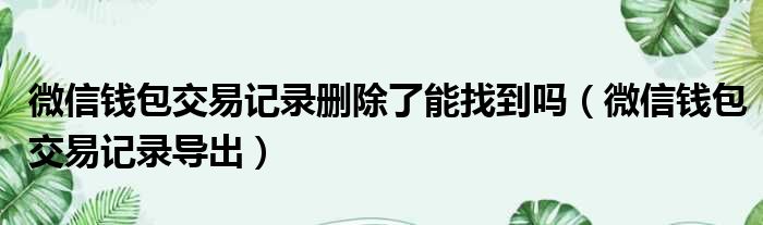 微信钱包交易记录删除了能找到吗(微信钱包交易记录导出)