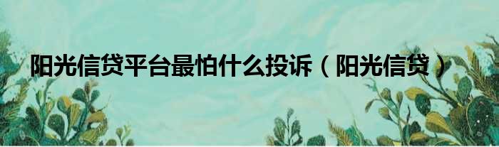 阳光信贷平台最怕什么投诉(阳光信贷)
