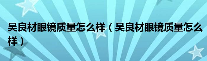 吴良材眼镜质量怎么样(吴良材眼镜质量怎么样)