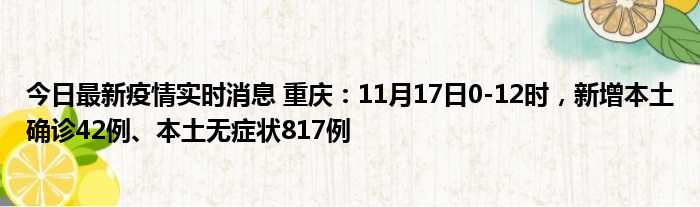 今日最新疫情实时消息 重庆:11月17日0-12时,新增本土确诊42例、本土无症状817例