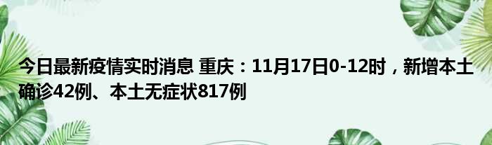 今日最新疫情实时消息 重庆:11月17日0-12时,新增本土确诊42例、本土无症状817例