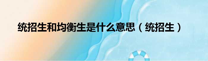 导读 大家好,今天小六子来为大家解答以下的问题,关于统招生和均衡生是什么意思,统招生这个很多人还不知道,现在让我们一起来看看吧!1、统招生