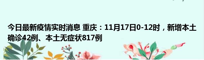 今日最新疫情实时消息 重庆:11月17日0-12时,新增本土确诊42例、本土无症状817例