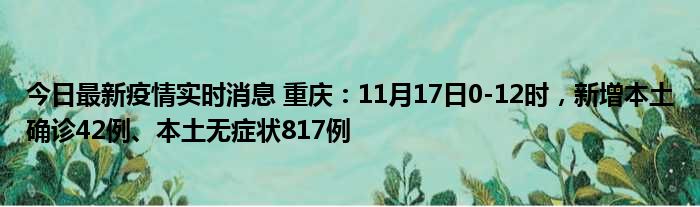 今日最新疫情实时消息 重庆:11月17日0-12时,新增本土确诊42例、本土无症状817例
