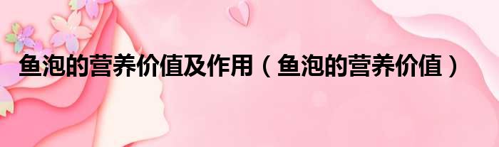 鱼泡的营养价值及作用(鱼泡的营养价值)