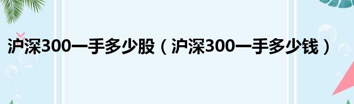 导读 大家好,今天小六子来为大家解答以下的问题,关于沪深300一手多少股,沪深300一手多少钱这个很多人还不知道,现在让我们一起来看看吧!1、沪