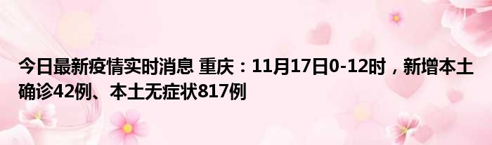 今日最新疫情实时消息 重庆:11月17日0-12时,新增本土确诊42例、本土无症状817例