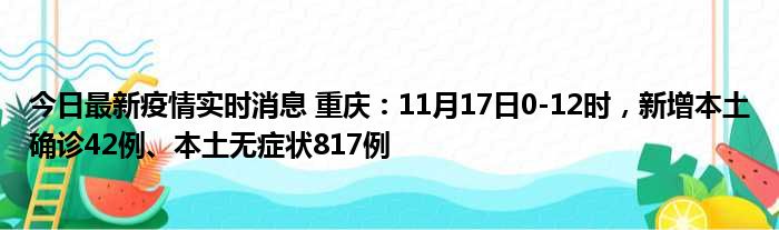 今日最新疫情实时消息 重庆:11月17日0-12时,新增本土确诊42例、本土无症状817例