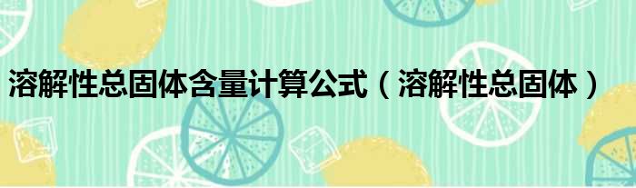 溶解性总固体含量计算公式(溶解性总固体)