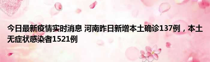 您的位置:首页 >房产频道 > 综合精选 > 今日最新疫情实时消息 河南昨日新增本土确诊137例,本土无症状感染者1521例 2022-12-07 15:30:15 • 来源: 导读 免责声明:本文由用户上传,如有侵权请联系删除! 上一篇:今日最新疫情实时消息 广东惠州新增4例新冠确诊病例,详情公布 下一篇:今日最新疫情实时消息 美国全国护士联合会批政府防疫不当 日本日增确诊连续两日超10万例
